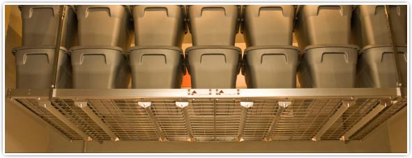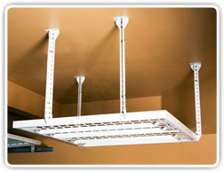 Slide-Lok Overhead Storage is made of strong and durable steel. The height is adjustable and will fit any storage need. Modular in design, Slide-Lok's Overhead Storage allows you to buy one unit or multiple units to suit your storage needs. This easily installed solution will not interfere with garage doors or openers, utilizing space that you never knew you had. Slide-Lok is proud to offer both the 48" x 48" and the 96" x 48" Super Pro ceiling storage units.